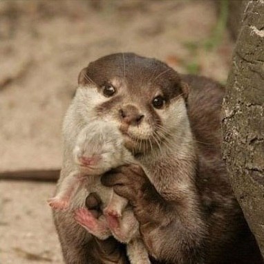 Выдра показывает нам своего детеныша.